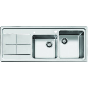 یکی از ویژگیهای مهم این مدل این است که دارای دو لگن است؛ این طراحی امکان شستن همزمان ظروف بزرگ و کوچک را فراهم میکند. یکی از لگنها عمیقتر است و لگن دوم معمولاً برای شستشوی میوه یا ظروف کوچکتر به کار میرود. همچنین یک سینی جانبی در کنار لگنها وجود دارد که فضای مناسبی برای آبکشی ظروف یا قرار دادن وسایل شستهشده ایجاد میکند.